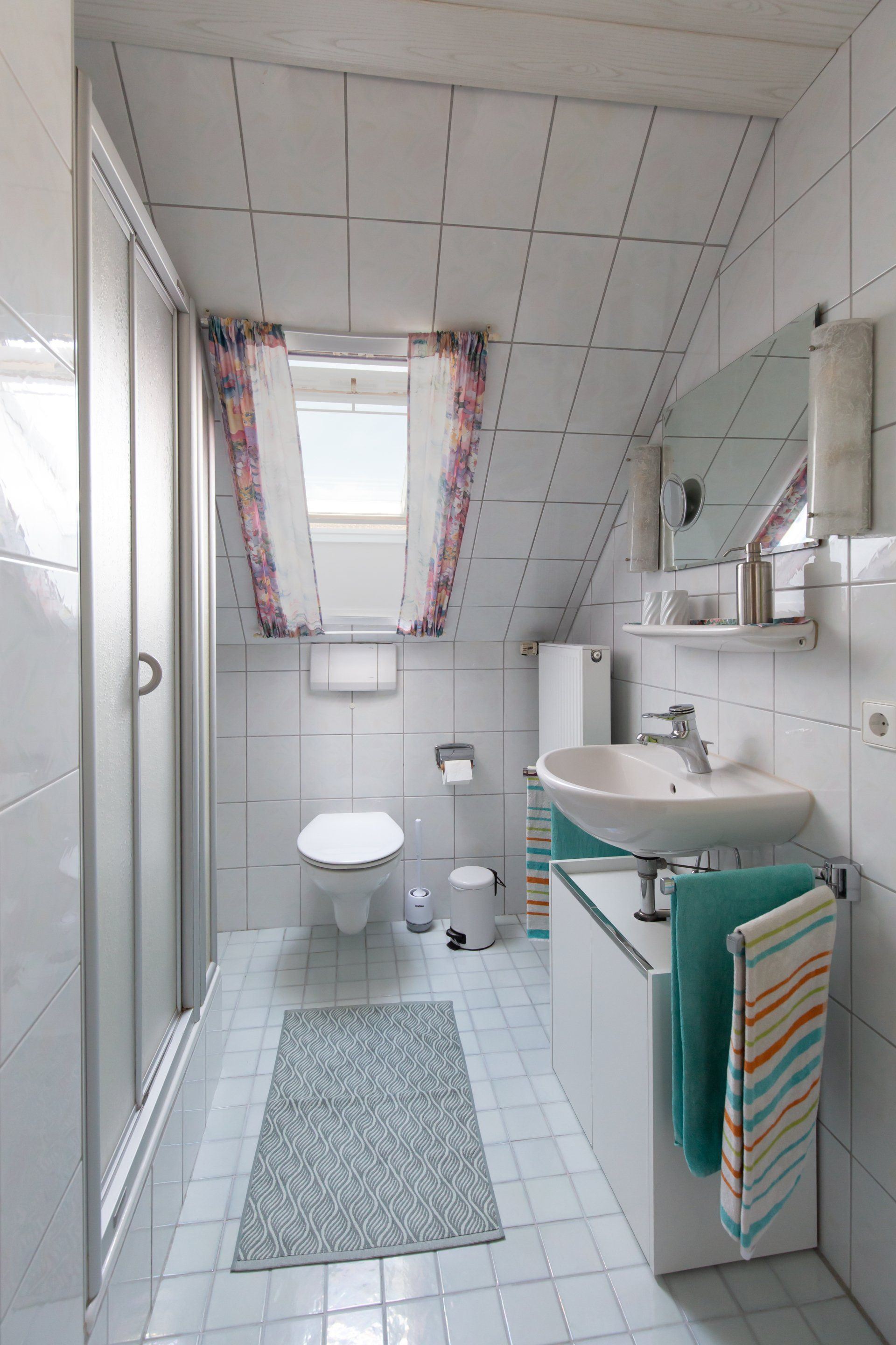 - Das Bad ist mit einer Dusche, Waschbecken und WC ausgestattet. Fön und Kosmetikspiegel sind vorhanden.